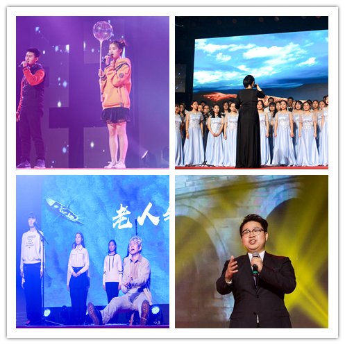 在观众的掌声中,校学生合唱团唱响《天路》,气势磅礴,余音袅袅;情景诗朗诵《老人与海》,带观众进入海明威笔下老人与鲨鱼搏斗的情景,身临其境地感受老人的不屈精神;青年教师代表代立飞独唱《在那桃花盛开的地方》,为观众们带来极高的艺术体验,迎来晚会第一个高潮。